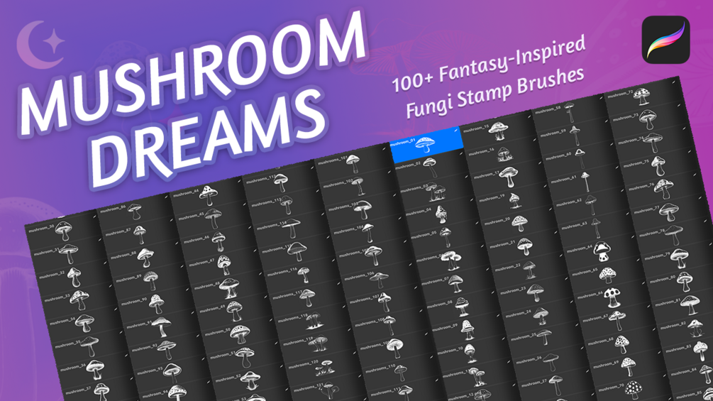 Mushroom Dreams for Procreate | 100+ Fantasy-Inspired Fungi Stamp Brushes